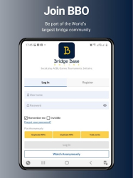Play contract bridge on Bridge Base Online (BBO), the world’s largest bridge site. Practice with bots or log in and play with other people. Compete in ACBL tournaments against players at your level. Watch the world’s finest players compete, or just kibitz at popular tables.– Practice a few hands against our bots. Great for your commute, or the dentist's waiting room! – Play bridge with people all around the world (various forms of scoring available)– Many tournament options, from free daylongs to ACBL national events – Chat with and e...